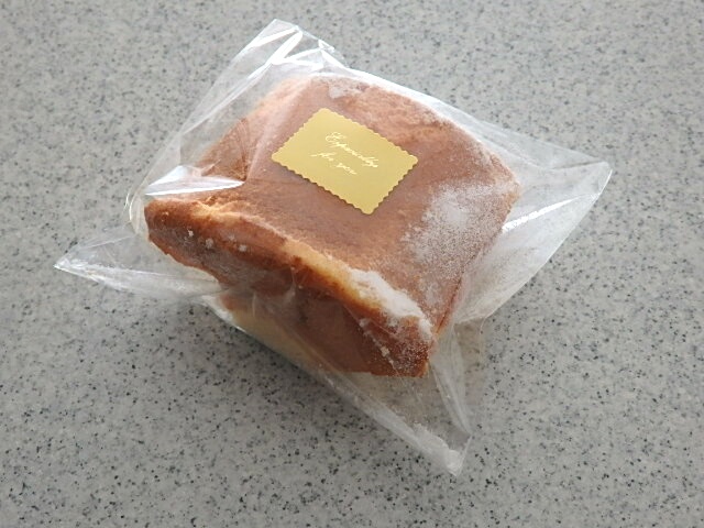 粉砂糖がかかっています。そして、レモンピールがところどころに入っていて、おいしい~。レモンのシフォンケーキ、お目にかかったのは初めて。揚げ物に添えられたレモンをかじるほどレモン好きの私、予想通りすごく好みでした。また食べたいな。